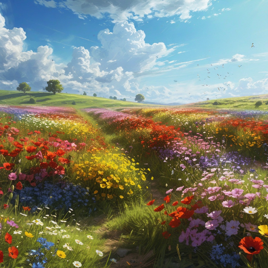 들판에 예쁜 꽃들이 가득 피어 있는 꿈